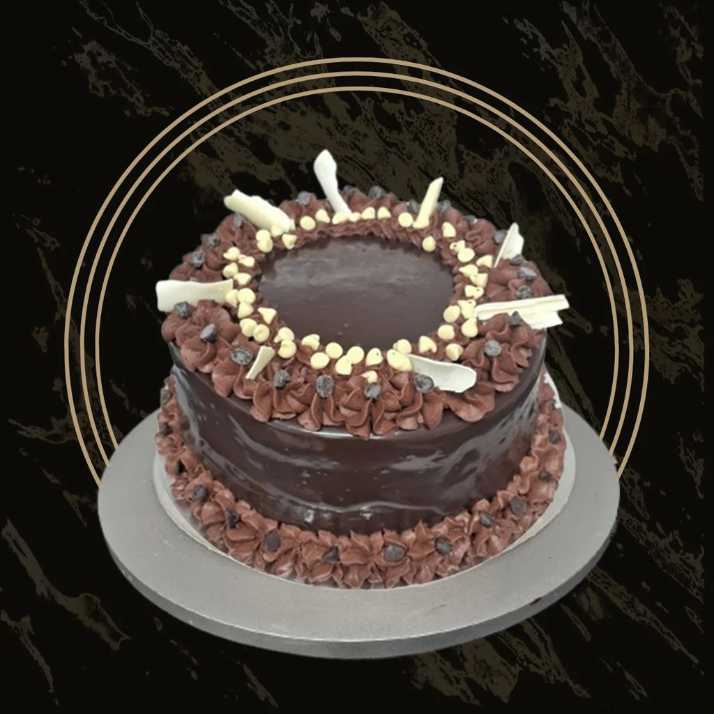 Have the ultimate chocolate experience with a rich, delicious chocolate cake by The Bakers Shop. All our cakes are crafted from premium ingredients, and our rich, moist chocolate cakes are layered with creamy, velvety chocolate ganache that will delight your taste buds with pure indulgence. This one is topped with white chocolate accents