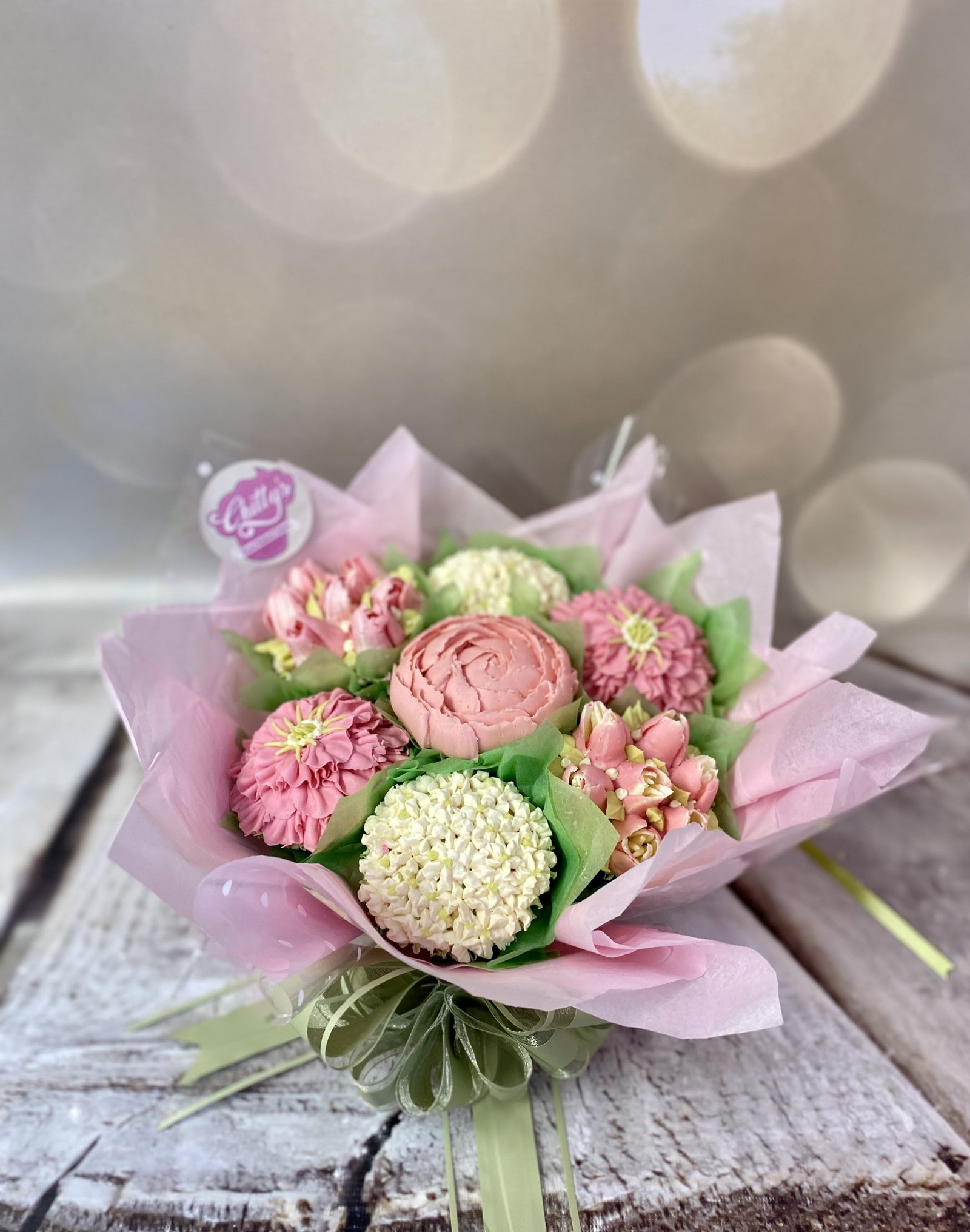 Gorgeous bouquet of floral cupcakes. Hand decorated with buttercream flowers.