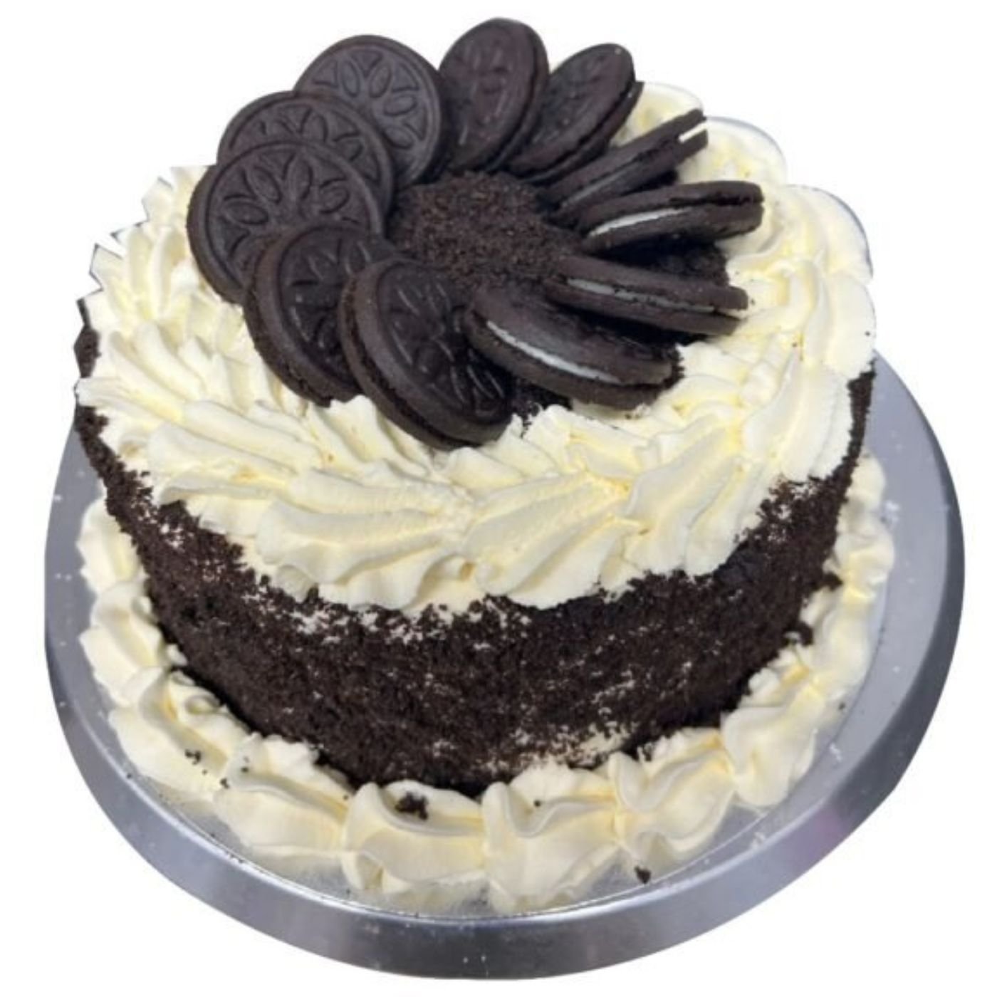 The Oreo Crown Cake from The Bakers Shop is a delightful treat for anyone with a sweet tooth. A soft, moist chocolate cake, generously layered with a creamy filling that mimics the flavour of Oreo cream, making each bite a delicious experience. The cake is garnished with crushed Oreo pieces on the sides, adding a satisfying crunch that contrasts beautifully with the smooth, rich texture of the frosting, and topped with a crown of Oreos.