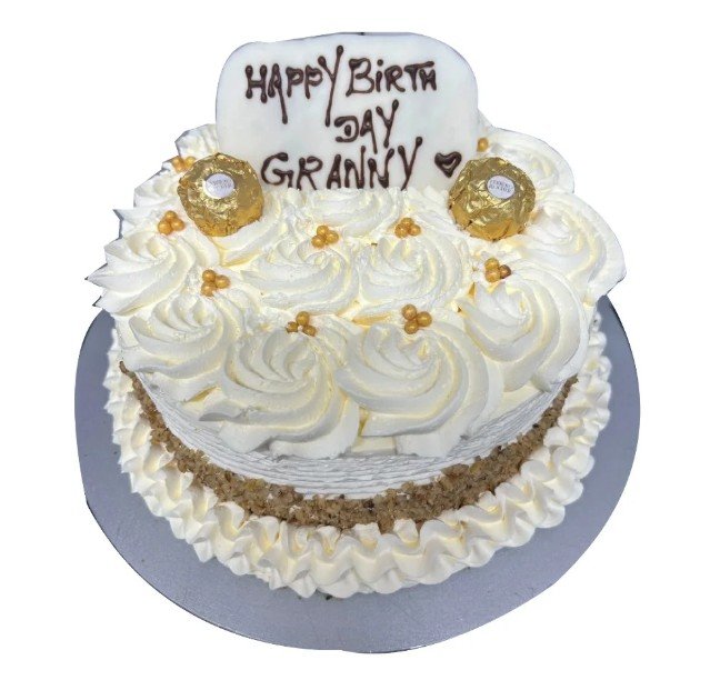 White Swirl & Ferrero Rocher Cake – message optional